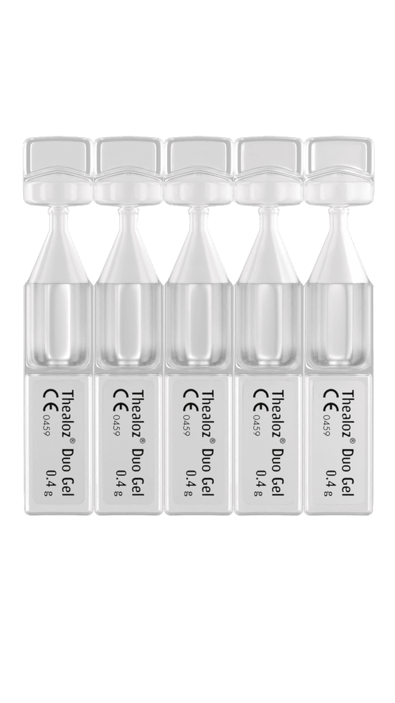 THEALOZ® DUO GEL : Traitement du syndrome de l’oeil sec sévère à modéré. Dispositif médical – CE0459 – Fabricant : Laboratoires Théa. Ce dispositif médical est un produit de santé réglementé qui porte, au titre de cette réglementation, le marquage CE. Demander conseil à votre pharmacien. Lire attentivement les instructions d’utilisation figurant dans la notice.