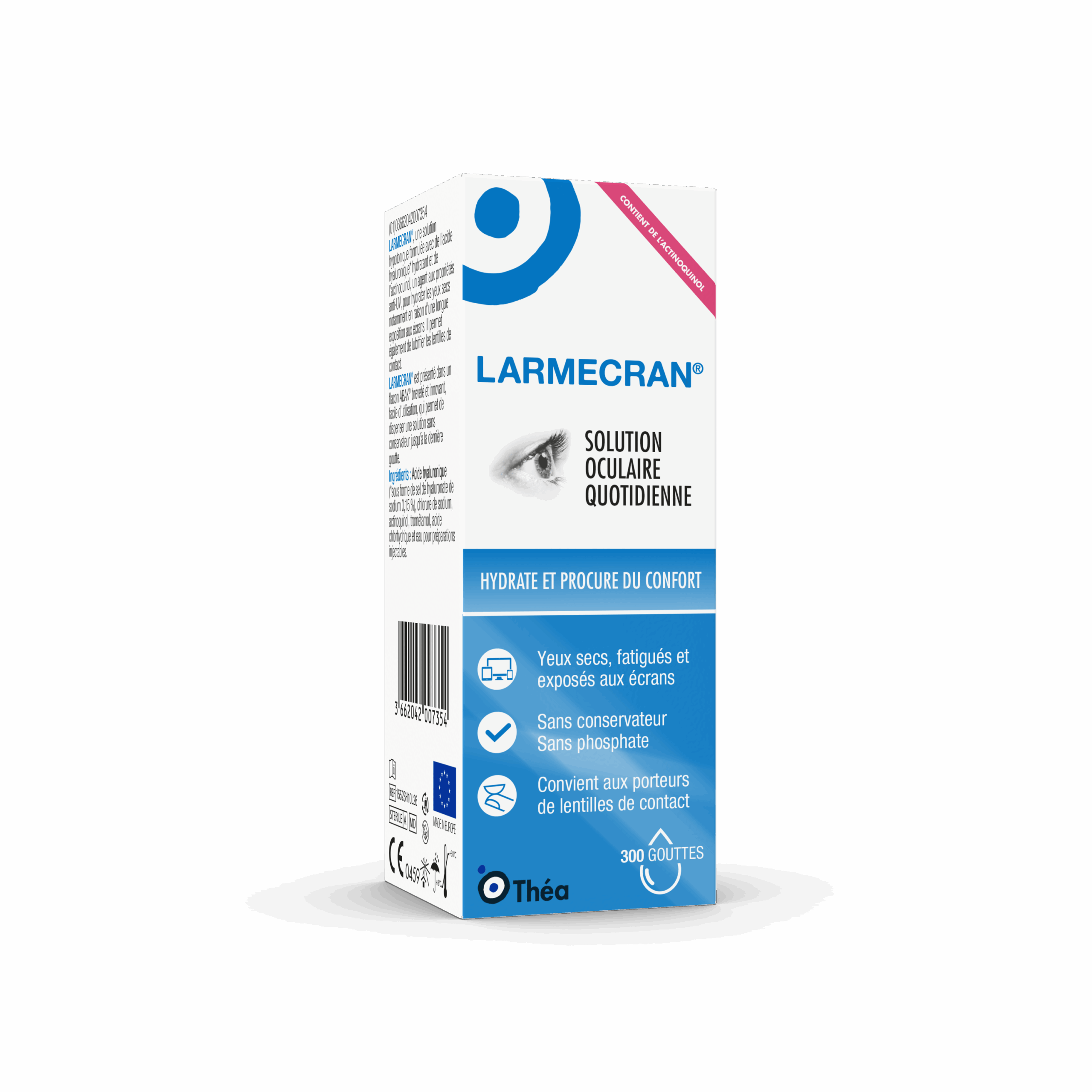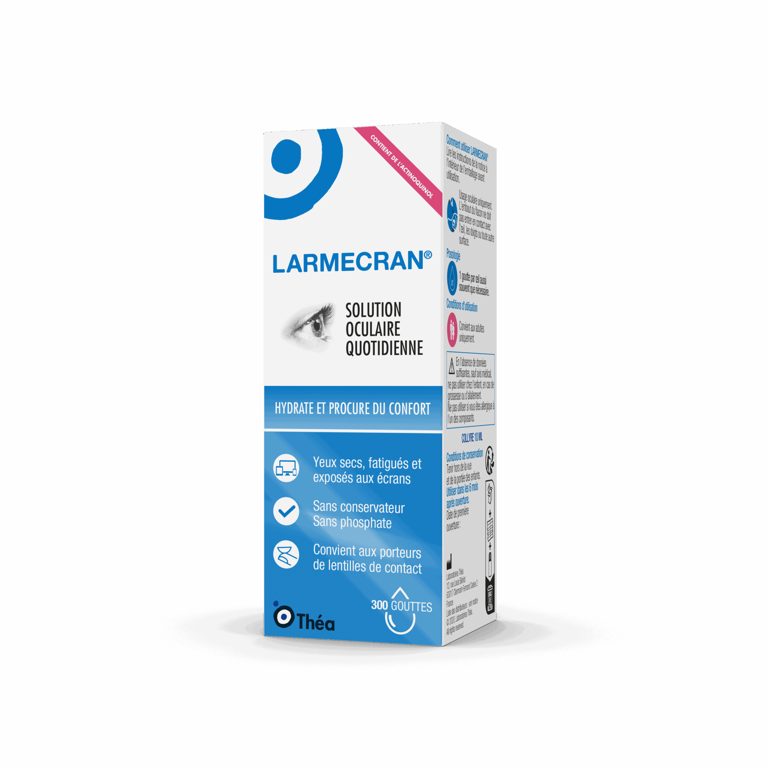 Lorsque vous êtes assis devant un ordinateur, la fréquence de clignement des yeux diminue, ce qui peut entraîner une sécheresse oculaire. Les gouttes oculaires LARMECRAN® permettent de garder vos yeux bien lubrifiés et soulagent les symptômes de fatigue oculaire. Utiliser des larmes artificielles sans conservateur est fortement recommandé, car les conservateurs peuvent aggraver les symptômes de sécheresse oculaire.